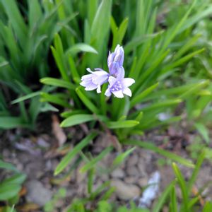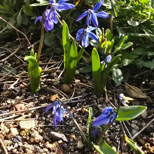 昨夜かな? 何か、鉢の中掘り起こしていたら、上部↑↑ ピーナッツ型の、小さな球根が出て来ました。 で…、皆様から、ご回答を頂いたのですが。。んんん"?ちょっと、違う様な気がしてます。 で!、心当たりとして、思い当たる花が↓↓下部 青色の、ソノお花なんですね。 でも、そのお花の名前も分からなくて×× ムスカリと同じ様な感覚で、育ってきて、花期も丁度。一緒です。 お名前、わかる方✋〃是非!教えて下さい<(_ _)>