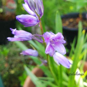 先に投稿したシラー カンパニュラータに似たイングリッシュブルーベルです。 特徴の違いは、イングリッシュブルーベルの方が葉が細く、細い筒状の花で花茎垂れ下がります。そして優しい香りがあることです。 純粋種のイングリッシュブルーベルはとても貴重なため、流通してても数が少ないため、欲しいと思ってから3年以上経ち、今回やっとタキイ種苗株式会社から買うことが出来た純粋種の球根です。 庭のスパニッシュブルーベルと言われるシラー カンパニュラータと交配しないよう鉢に植え込み玄関先に置いての管理です。 先の投稿のシラー カンパニュラータと見比べてもらえたらありがたいです。