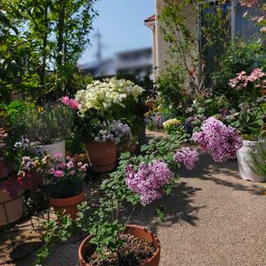 PWアンバサダー2024秋 でいただいた 『姫ライラック ドワーフパープル 』が咲きました✨ お上品な落ち着いた紫色が庭に馴染んで、とっても素敵💖 こういう自然樹形の樹木、大好きです🥰