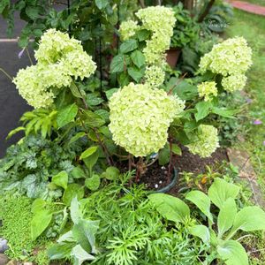 ① ノリウツギ グランデライムチーク(PW2024春)✨ 大小の全ての枝にお花が付いています😊🎶 添え木してシャキーン❣️(8/21撮影) ② 実は添え木をした方がいいかなと思っていた矢先… 雨の重みでペッチャンコに😱 横で咲いていたジギタリスも災難ですね😅(8/13撮影) 8号鉢で半地植えですがいつ地植えにしようかな…