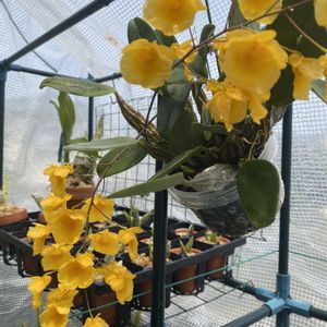 Dendrobium lindley 'Florida Sunshine' デンドロビウム リドレイ'フロリダ サンシャイン 今年は4花茎出たけど 先月外置きしたら2花茎枯れ😭 残った2花茎が只今満開🌸 今年も 咲いてくれてありがとう