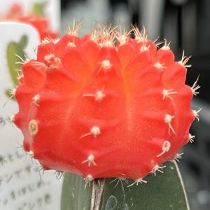 🌵ヒボタン(緋牡丹) 上の赤いサボテンだけがヒボタンです。 葉緑素を持たないので下の緑色の柱状サボテンを台木として接ぎ木して育てるそうです。 単独では生きられないので買った時に楽しむ切り花的なサボテンです。 ⚫︎サボテン科 ギムノカリキウム属 ⚫︎原産 パラグアイ ⚫︎花期 ーーーーー