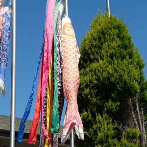 公民館の鯉のぼり🎏 「🎵屋根より高い鯉のぼり〜 中略 おもしろそうに 泳いでる🎵」 「🎵いらかの波と 雲の波〜 中略 高く泳ぐや 鯉のぼり〜🎵」 鯉のぼりの歌 どちらを口ずさみますか?🎏
