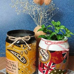 ちーさんが作ってらした 布のリメ缶 可愛かったので 布の貼り方教えて貰って、作ってみました❣️