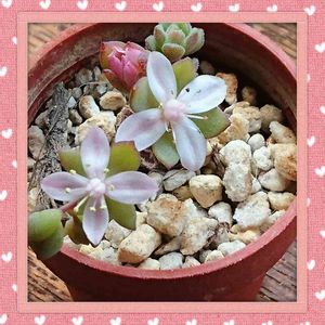 ぽろっと落ちた、とっても小さい スプリングワンダーを一寸鉢に植えていたら、なんと言うことでしょう⁉️ 可愛い花が咲きました💞