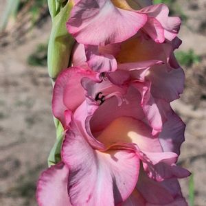 おはようございます☔️☔️☔️ 今日のお花【グラジオラス】です😊 ①②先月26日、実家へ🥒の定植のお手 伝いへ行った時、道路の向こう側の 畑に咲いていました😊 ③同じ畑でリアトリス、パイナップル リリー、柿がありました😊 ④パイナップルリリーあと少し😊 今頃どんなかなぁ~😊 ⑤仕事を止め(午前6時~午前9時)実家 へ歩いて帰る途中、お寺の植え込み から何かが😊 AIはムベと教えてくれました😊 ①~⑤2025・7・26撮影