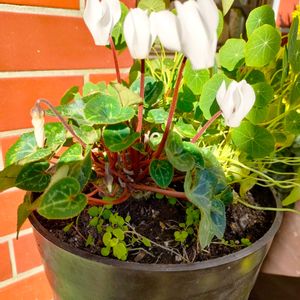おはようございます(*ᵕᴗᵕ*)⁾⁾ 🏷️白い水曜日♡ 白いシクラメンさん、綺麗に咲き初めました。🥰 根元の小さい葉っぱは、庭で、見つけたタイムミルキーウェイさんです。🤭 この子も、小さな🤍色の花が、咲きま〜す。モリモリになって欲しいなぁ〜🤍🎶🤍🎶 ウン♪(,,^ᴗ^,,)🐱🐾