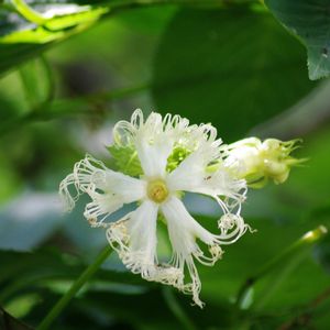 キカラスウリ 黄烏瓜 ウリ科カラスウリ属のつる性多年草 北海道から九州に自生 雌雄異株 川沿い歩道です。 大きな桜の木に絡んでましたよ。 良い所で咲いてるねぇ〜なんて、話しかけちゃう。ぷぷぷっ この辺り けっこう 居心地良さそうなんです。何株も見っけました。 同属のそっくりさんなお仲間の カラスウリは 日没に咲き始めて 一晩咲いたら 朝には 萎んでしまいます。 お昼前のこの時間に まだ咲いてるって事は キカラスウリですね。 横から見ると… ん〜 たぶん雄株の雄花かなぁ 雌花だと 萼筒の下辺りにぷくっと子房があるはずだけど この写真のお花は ぷくっとしてないですよね。シュッとしてるから雄花かな。たぶんね。 撮影 2021 6/12 ★ ホワイト✧コレクション ★ 夜咲くんだよシリーズ …………………………………………………………… 5月から 白いお花を集めてました。(ま、途中時々色モノも混ざってますが) ★ ホワイト✧コレクション タグ付けておきます。 のんびりやってる内に もう7月ですね。この辺でお終いにしておきます。 ずっと待たせていた5月〜6月のが まだまだあるんです。 ヤバッ