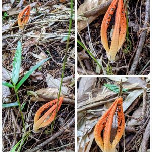 今日は ごみゼロ運動で道路沿いのゴミ拾いをしました。 このオレンジ色の姿を見た時は生ゴミの蟹のツメかと思いました💧 どうやらキノコの仲間っぽいので写真を撮りました。 帰宅してから調べたらサンコタケというキノコのようです。 ゴミ拾いのおかげで面白いキノコに出会えました👍