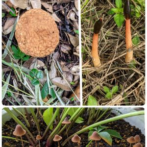 昨日の午後の里山散策♪ クレヤツシロランを探しましたが見つかりませんでした…💧 真っ黒な平たいキノコを発見👀❗ ゴムタケと教えていただきました🍄 以前見つけた白いキノコとコラージュしました🎶 白いキノコはオオシロカラカサタケという毒キノコでした💦 いっぱいあったらオセロゲーム⚫⚪⚫⚪⚫できるかな〜😆😆😆