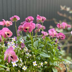 名無しビオラちゃん💕 ヒナソウも元気に*\(^o^)/* ピンクのビオラの首が長くて ぴょんぴょんすすっと咲き方が 可愛い♡