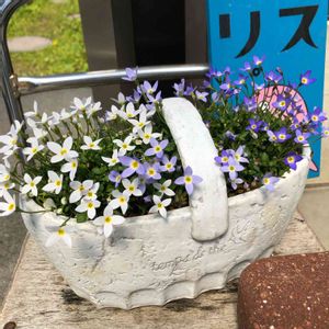 プスキニアが満開です🤍💙 ホントはペーパースイセンを一緒に植えたけど、冬の間にダメになっちゃいました🥲💦 ……ので、これまた好きなブラキカムと冬越しヒナソウを寄せて、ミニミニ寄植えです☺️🍀 チマチマ好きにはたまらない❣️