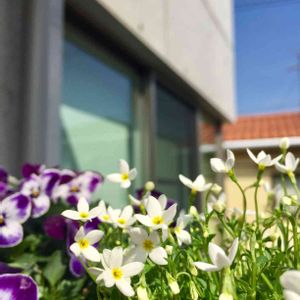 ヒナソウを買いました。 ヤッパリ可愛いな〜💕 ピーナッツ🥜メガネ君も喜んでます。 あったかい朝です。
