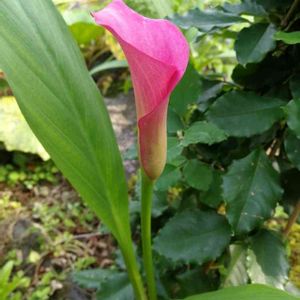 ひょっこり、カラーが咲きました🌺 岩の割れ目に球根があって、何年か力を貯めて、立派な花を咲かせたようです。 20年前に義理の父母が手入れをしていたこの庭は、ひょっこりが多くてラッキーです💕