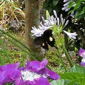 アゲハチョウがアガパンサスに飛んできました🦋 ちょっと吸っては、庭を1周飛んで戻り、何度繰り返したことか? 長くとまってないから、撮影失敗😣と思いきや、おかげで撮れました😊