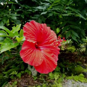ハイビスカスが咲きました🌺 夏至もすぎ、夏気分🌞 天気はまだ梅雨空だけどね🌧️テラスに連れてきました! 1番花は雨で外に出ない間 に、人知れず咲いて落ちてしまった😵雨の合間にチェックしなきゃね🎵