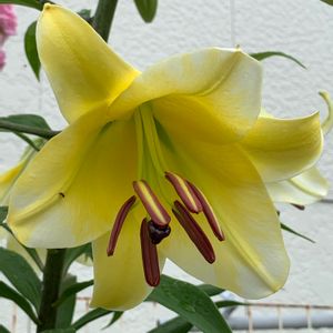 とっても香りの強い百合😊💕 カサブランカの様に大きな花 カサブランカを調べると真っ白いものだけが カサブランカらしい でも、ラベルにレッドカサブランカとかの文字が 名前もどんどん変わっていくのかな? 赤いものは、マンボ 黄色いものは、コンカドール 大きなお花、1年目なので、 背丈は低いですが 存在感は、凄いですね😊💕