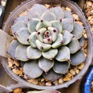 ヒアリナランチョビエホ自家受粉 って思いよった子 なんか葉っぱザラザラ? エウリクラミス×ランチョビエホかもしれん💦 でもランチョ自家はどこいった(・ω・ = ・ω・) 思い出した! 早めに育ったエウリ×ランチョを4cmポットに植え替えたんや! エウリクラミス 子株がぐるり付いとったけんか 今年は花芽ない