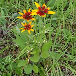 「河川敷で見つけた」 撮影📱2023.10.22 熊本市世安町の 白川左岸河川敷で撮影 ハルシャギク🌼 赤色・黄色の花🌼が 数輪咲き綺麗やったよ