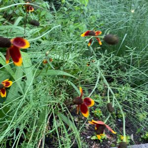 黄色のハルシャギクの中に一株だけ赤い子が✨✨