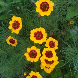 コレオプシス ソランナゴールデンスフィアー ①②ゴールデンスフィアー✨ ポンポンま~るい元気なお花🟡 ③④ハルシャギク ⑤ゆうべの月✨ 金曜日✴️よい一日を🍃