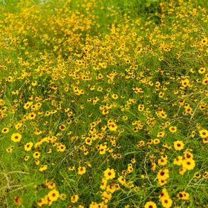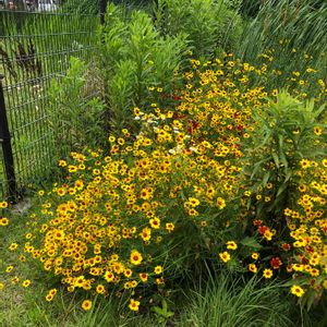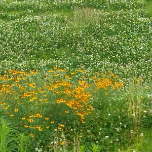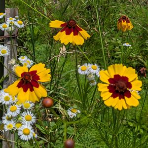 河原で「ハルシャギク」が咲いていました。 ヒメジョオンの白い花が黄色を引き立てています🎵