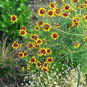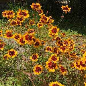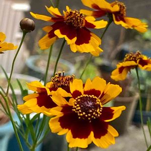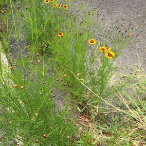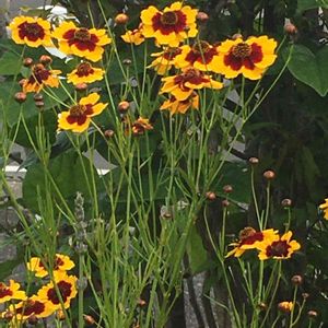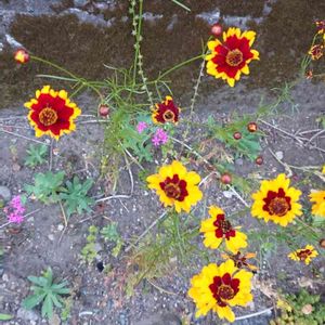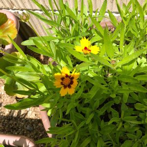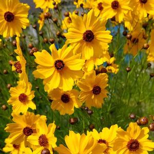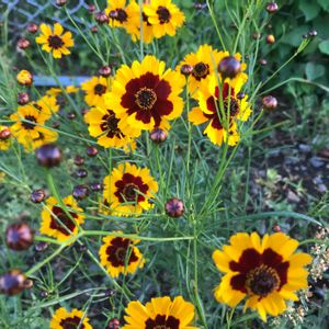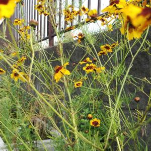 ハルシャギク(波斯菊) 💛黄色の鮮やかな花を咲かせ、明るく賑やかに見えます😃 💛こぼれ種で毎年咲いてくれます😃 💛このハルシャギクは、花の中心が赤くありません。 🧡🧡🧡 ハルシャ(波斯)はペルシャのことですが、この植物の原産地は北アメリカなので、ペルシャとは関係ないようです🤗
