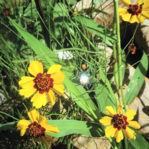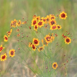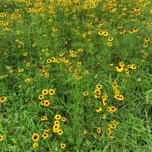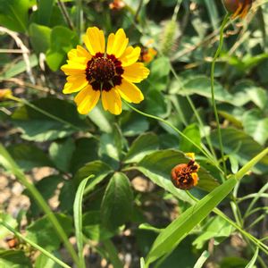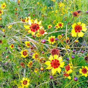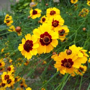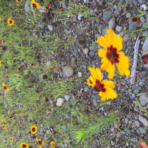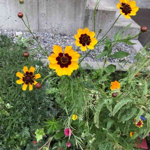 風に吹かれて♫ ハルシャギクが空き地に群生していました☺️ 別名 : 蛇の目草