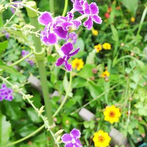 コミュニティ花壇 デュランタが枝葉を伸ばし 次々と花を咲かせてくれてます❗️🤗💕🎶