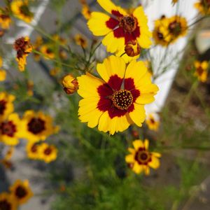 公園の花壇にハルシャギクが咲いていました。 支え棒に結わえられて大切にされてる😉
