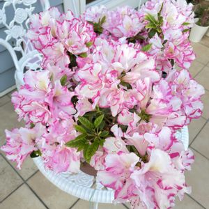 アザレアさん 満開を楽しんでおります。 この子はお外がお好きだったのかも◡̈⃝︎⋆︎