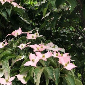 ヤマボウシ。 遠い山の中に咲いているような風情、優しいピンク色の花びら。
