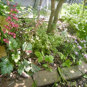 ここの花壇作った時 ライラックと一緒に植えたものたち デルフィニウム、アガパンサス、ベロニカ 数年は可愛く咲いて喜んでたけど そのうち いなくなりました(^◇^;) アガパンサスは葉っぱだけいつも出てるかもしれないけど 咲かなくなって何年も経ってます💦 その後も色々植えたんですけど ライラックが大きくなってきて環境が変わったようです。 日陰も耐え得るものにしたらいいのかな😅 去年あたりからやっと気付きました。 当初から元気にいるのは アスチルベだけ(笑) 今は この間植え込んだヒューケラ パリ ロニセラ イベリスクイーンアメジスト クリスマスローズ…の順で(その向こうは 白いイベリス、薔薇) いい感じに続くといいな(*≧∀≦*)