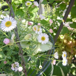 エリゲロン あっちこっち向いて咲いてます 濃いピンクのが好きなんだけど なかなか捕まえられません😅 シレネ シェルピンクも 同じようにあちこち向きタイプ 埋もれてるヒューケラ小さいまま💦 午後からリビングのレースカーテンを 洗ってるんだけど 外がやけに見えるような…気になる😂 でも暑いから 干すの省略して、元の場所に直接吊るせば乾くよね(笑) 暑いけど風が心地よいです🍃