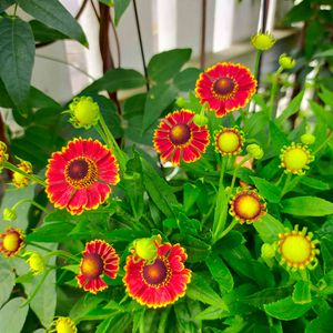 満開になったヘリオプシス バーニングハーツ 植えたときは銅葉だったんですが何年か経つと緑葉になってしまいました