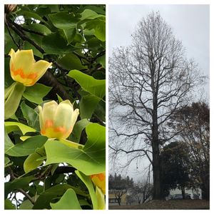 広場のユリノキがスッカリ裸んぼに。 見上げる程の高木なので存在感あります。落葉樹は季節の移ろいがはっきりしていて、大好きなこのユリノキも例に漏れず2度楽しめます。 pic左側は5月に花が咲いた時。高い所に咲く花が時には誰にも気づかれないことも。 この広場のは花に手が届きそうなほど間近で眺められる。 pic右で見ると左側に低い枝があるので、花をよく見せてくれるのだという事がよく分かる😄👏 また5月が楽しみになる👍🎶