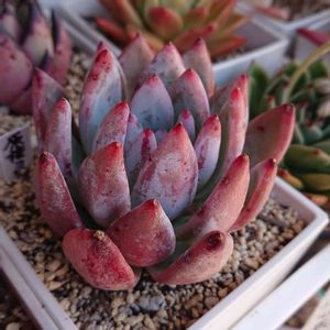 今日も暑うございましたね🤣💦 明日もですね🥶 さて、今日は色白さん、粉をまとったエケベリアを集めて見たよ✨ あっ、そうそう、ここには無いけど、寄せ植えに霜の朝があったな、、 皆さん、どれか持ってますよね? あと、色白さんってどんなのがあるかなぁ