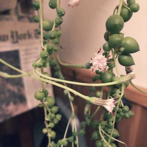 グリーンネックレスの花が咲きました💕 グリネ、好きなのにうまく育てられないって話をしたら、職場のりんこさんが持ってきてくれました🩷 ちゃんと育ってねー‼️