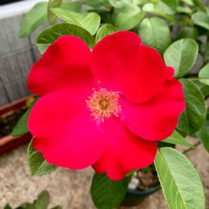 おはようございます。 これまた挿木で頂いたロブスター。 シンプルな一重の薔薇ですが、なんとも可愛い朱赤😍 近くで見た方が可愛い子です💕