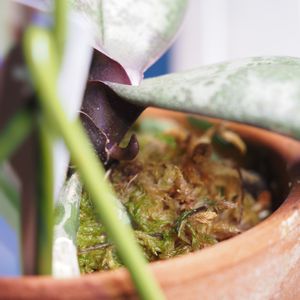 植え替えした二つの蘭 左)胡蝶蘭のシレリアナ 鉢植えにしていた根っこが上と鉢底から出てきた。その後の管理の手間を無くしたいのもあり、バスケット植えに変更。元々の水苔は綺麗なので周りに足す程度にしました🧺 右) ポダンギス・ダクティロセロス SUGOI-neとプラ鉢だったのを、今回は水苔と素焼き鉢に変えました。 この蘭は葉っぱが肉厚の扁平で扇のような形をしている 冬の乾燥でシワシワになってしまった(コンポストの管理失敗)けど、強肩なので枯れることもなく無事越冬出来ました😅 どちらも最低気温が15℃になるまでは室内管理です。