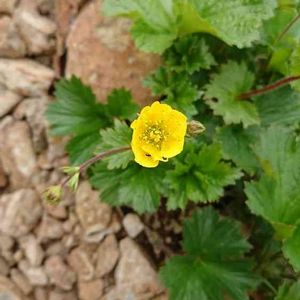 ミヤマキンバイの葉は3枚なのでこれはミヤマダイコンソウ🌼 葉も花もツヤツヤ✨