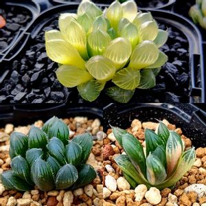 ●ススキノキ科 ツルボラン亜科 ●ハオルチア属 ●ブルーレンズオブツーサ錦糊斑😻😻 海外ドラマを観るのも飽きたので、一株植替えしちゃいました。☝️🤓 そうですね、徒長してしまったと一人で騒いでたあの子株付きのブルーレンズオブツーサ錦です。😅😅🤣 画像上の二株が親株に付いてた子株です。😆 しっかり子株がくっついてたので、切り離しに時間が掛かりましたが子株に根が付いたまま外すことができました。😆😆😁 親株も、植替えしてみれば徒長気味ではあるがこうして見ると、そうでもなかったようです。🤣🤣😅 大きい子株は錦の部分はなく、ただのブルーレンズオブツーサでしたが、小さい株の方は多少ですが斑が入ってましたね。✌️😁 今後の成長を見守ります。☝️🤓