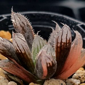 ●ススキノキ科 ツルボラン亜科 ●ハオルチア属 ●ブルーレンズオブツーサ錦②😻😻 おはようございます。🥱🥱🥱🥱 この子は、まだ葉の色は変わらず赤系ですが、このまま変わらずに成長して欲しいですね。☝️😁 成長の度合いが遅いです。🤔😅 休眠期だから仕方ないけど、何だかんだ、多少の成長の動きはどのハオルチアにもある気がします。☝️🤓 実際にこの子も、前回よりは葉が開き、落ち着いた感じがありますね。😆😋 さてと、今日は家で安静にしてます。😅🤣 風邪かな。😮💨🤢😵💫😵😷