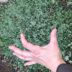 PWのスーパーアリッサム 植えた時は人差し指と親指におさまるくらいで 1度切り戻しして放置してたらこんなに 広がってた😳 でもなかなか真っ白なお花のドームにはならない~