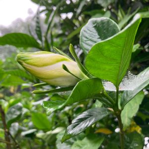 霧の中たくさん蕾がついた梔子 咲き待ち娘がスタンバイ中 白と緑のコントラストが とても綺麗です💓 🏷金曜日の蕾たちに参加させて頂きます♪