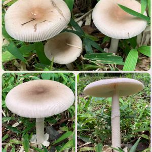 ツルタケダマシ…かな 中心から外に向けての柔らかいグラデーションが素敵〜✨ ツルタケによく似ていることからツルタケダマシというらしいが、 さらによく似たキノコにタマゴテングタケモドキというのもあるんだとか… ツルタケには、ツバが無く ツルタケダマシには、ツバが有る タマゴテングタケモドキは、ヒダの色が淡紅色… ツルタケダマシのツバは白色 あぁ〜分からん‼️😵 “モドキ”も“ダマシ”も苦手だ〜😩 テングタケ科テングタケ属