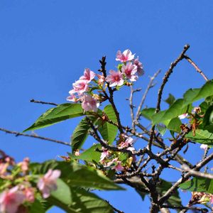 旅と花の風景🏍🚶♂️ 真っ青な空に桜🌸も咲いています。ポカポカとあったかい陽気の中のブラブラ旅、気持ちがいいなぁ😌