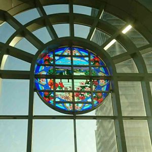 JR九州久留米駅の ステンドグラスです✨ 椿、コスモスでしょうか❔