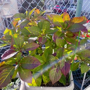 令和4年11月27日(日)🔹🔷☀️🔷🔹晴れ🔷おはよー^_^ございます 小さい庭のガクアジサイ ひな祭りは今 🪴葉っぱの色が変わってきています。
