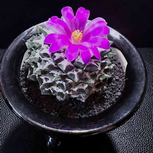 Ariocarpus kotschoubeyanus 黒牡丹 咲きました ショッキングピンクの花🌸は とても綺麗です。 準絶滅危惧種の黒牡丹 直射日光は苦手と言うけど 3時間程度は 直光を当てています👍 意外なことに、室温またはわずかに低い温度で、低湿度に保たれることを好みます 冷房室内OK🙆♂️ 冬の寒さにも強いんだよね👍